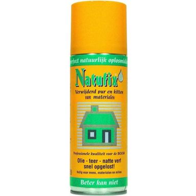 Natufix is een perfect natuurlijk oplosmiddel voor de professionele bouw. Toepasbaar op ramen, kozijnen, marmer, hout, harde kunststoffen, natuursteen enz. Op kunststof eerst testen. Niet toepassen op rubber en polystyreen. Perfect professioneel oplosmiddel dat niet uitgeharde kit, verf, lijm, stickers, purschuim, olie, teer en vet snel oplost. Natufix is veilig voor mens, materiaal en milieu.