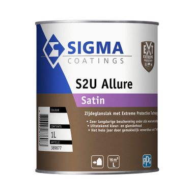 Sigma S2U Allure Satin is een hoogwaardige zijdeglanslak op terpentinebasis voor buiten. Deze verf is het hele jaar door gemakkelijk te verwerken van 0°C tot 30°C. Dankzij het Dual Guard System® heeft deze verf een uitstekend glans- en kleurbehoud en biedt tot 10 jaar hoogwaardige bescherming onder alle weersomstandigheden. Om dit te behalen is het wel noodzakelijk de Sigma S2U Allure Primer als grondlaag te gebruiken. Liever een hoogglans lak? Kies dan voor de Sigma S2U Allure Gloss.
